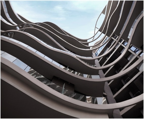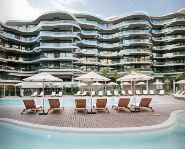 Diseñado por el estudio Carlos Ott Arquitectos en asociación con Carlos Ponce de León Arquitectos, la propuesta formal del edificio apela a un lenguaje de formas náuticas y orgánicas, con proas de fachadas sinuosas y curvas, con una arquitectura en forma de claustro con parque central, rodeado de espacios verdes que se integran a los espacios recreativos, comerciales y turísticos de toda la zona.
